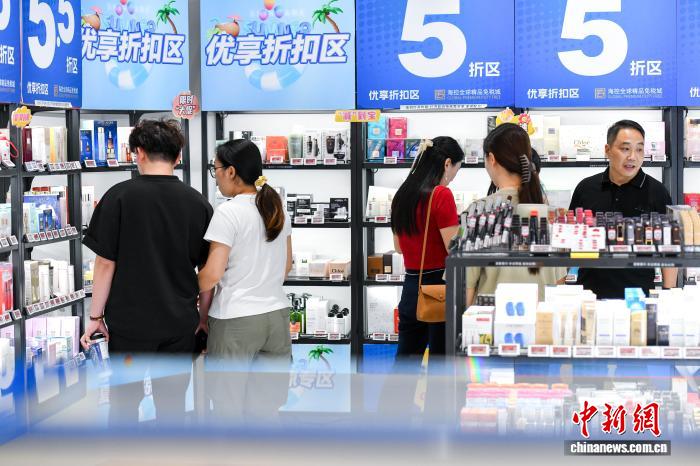 10月17日,游客在海口海港环球精品免税城选购商品。中新网记者 罗云飞 摄